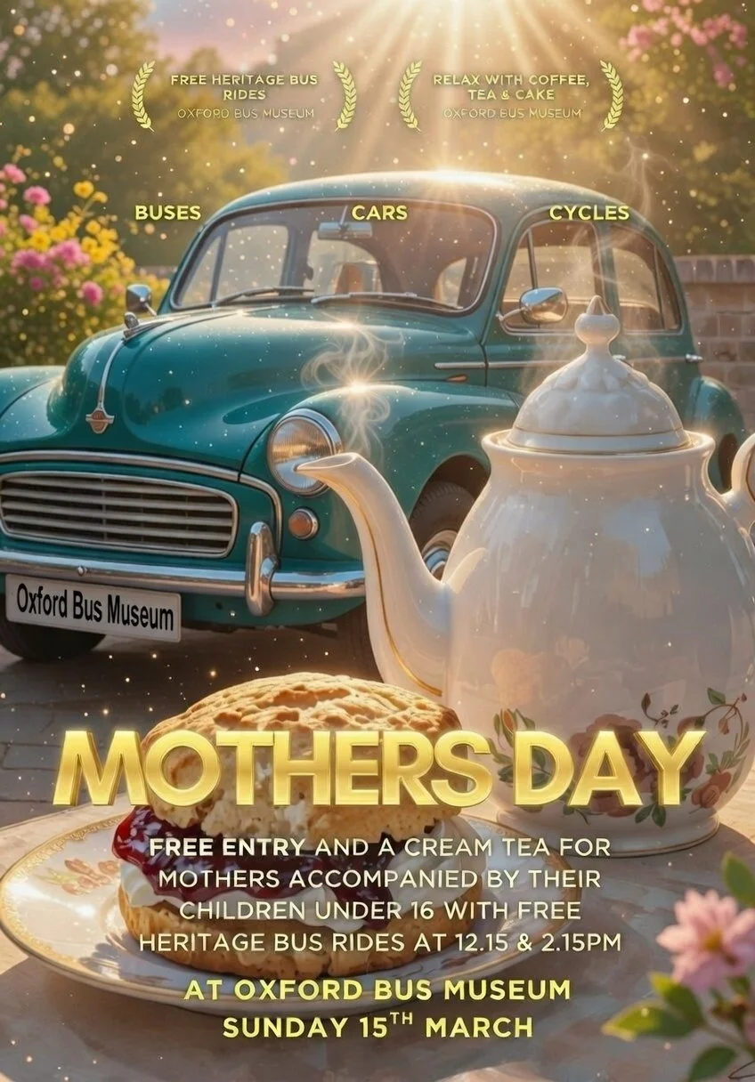 π Sunday 15th March - MOTHER'S DAY - Free entry and a cream tea for mothers accompanied by their children under 16 with Bus Rides at 12.15 & 2.15pm